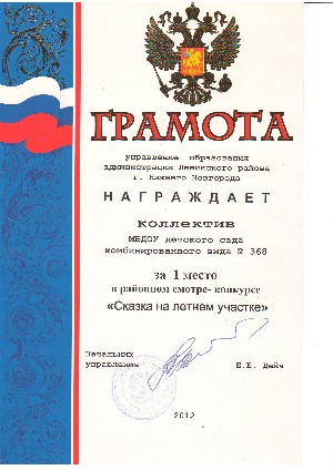 ПОБЕДИТЕЛЬ в районном смотре-конкурсе "Территория детства" 2017 (грамота управления образования администрации Ленинского района города Нижнего Новгорода